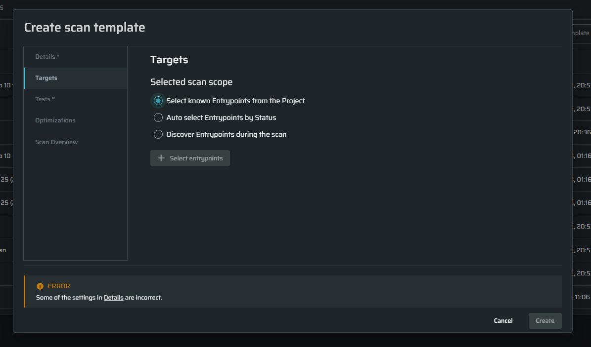 The Targets tab in the Scan Template creation flow has been aligned with the Scan Configuration page to ensure templates remain generic and reusable.