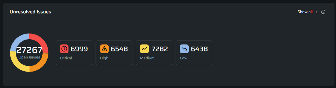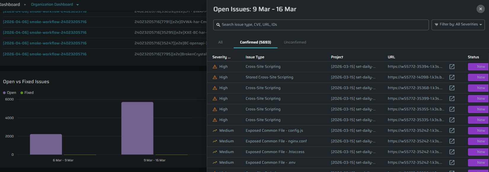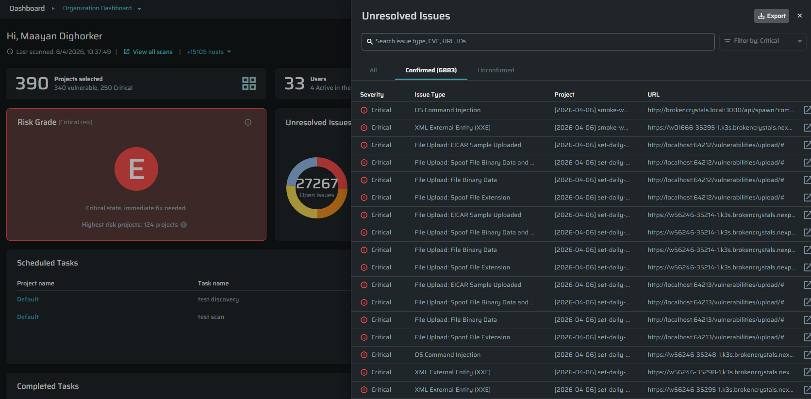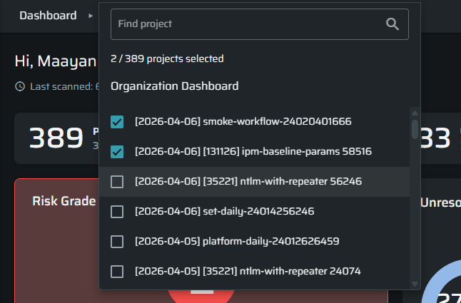 The Organization Dashboard gives you a single view of your security across all projects. Instead of checking each project separately, you can quickly understand risks, track progress, and prioritize actions in one place.