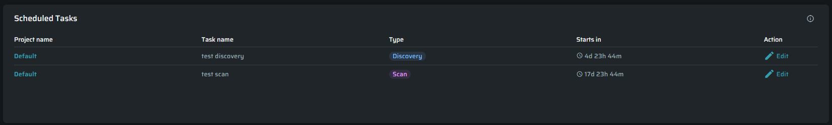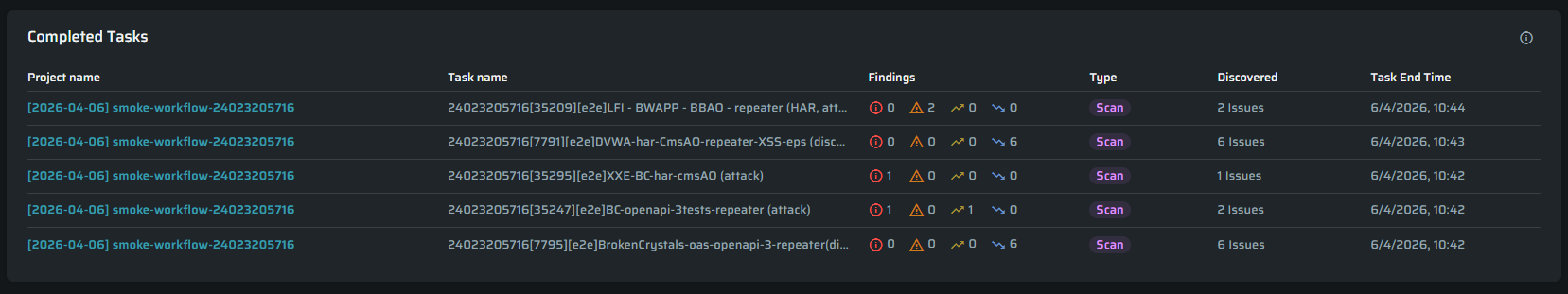 This section shows scan activity across projects. Use this to track execution and coverage of your scans.