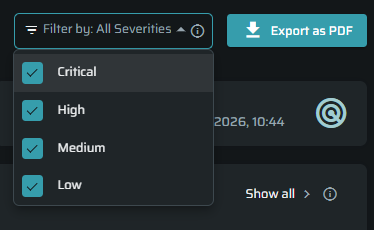 - The entire dashboard view can be exported as a PDF snapshot for reporting and sharing