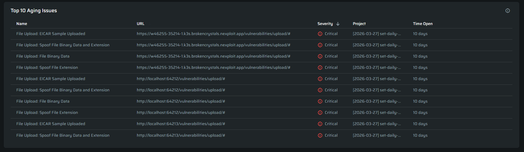 Dashboard data updates automatically following every completed scan. If no new scan data is available, widgets will display the latest available snapshot.