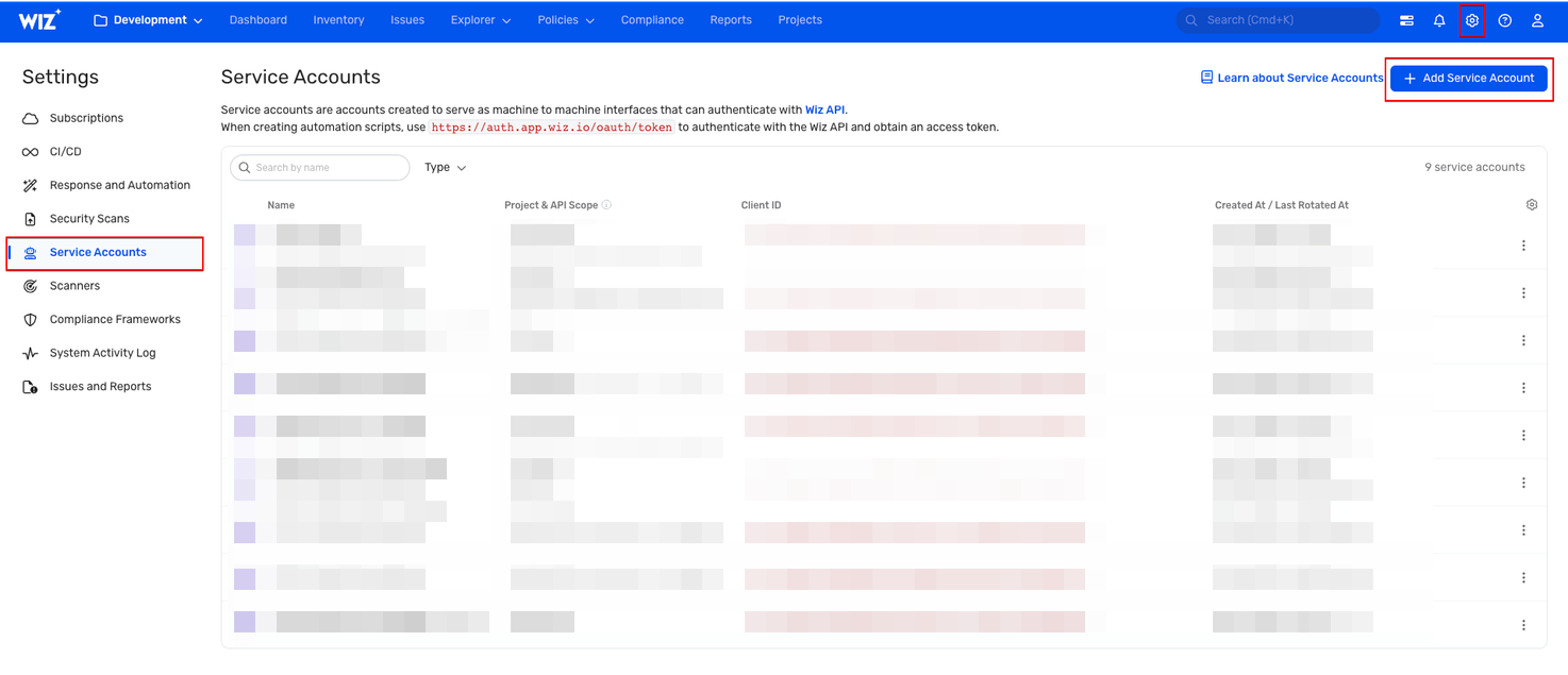Step 1: Create a Service Account in Wiz